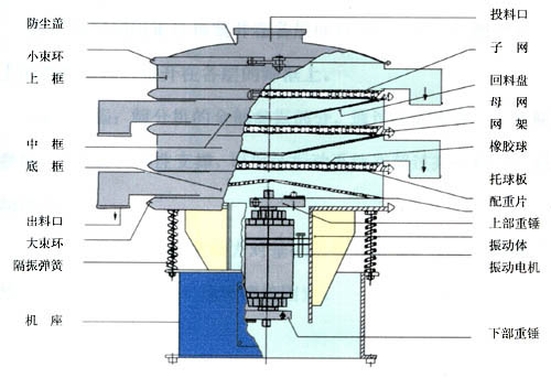 XZS系列旋振篩是在S49系列旋振篩的基礎上,吸收國內外先進技術,并采用先進的加工工藝而設計的高精度篩分過濾機械,它是以立式振動電機或專用激振器為振動源,立式振動電機(或激振器)上、下端裝有偏心重錘,可產生水平、垂直、傾斜的三次元運動,通過調節上、下偏心重錘的相位角,改變物料在篩面上的運動軌跡以達到篩分各種物料的目的。該產品適用于任何粉、粒、液的篩分和過濾的行業。廣泛用于化工、醫藥粉、液、涂料、顏料、化妝品、油脂、樹脂、陶瓷漿、粘土泥漿、生石灰、耐火材料粉末,冶金粉末、電磁粉末、研磨粉、果汁、飲料、食糖、食鹽、味精、調料、奶粉、淀粉、面粉、米粉、碳粉、石墨粉、錳粉、碳酸鋰、助溶劑、滅火劑以及環保行業的污水、廢水處理的工藝過程中的篩分、過濾。